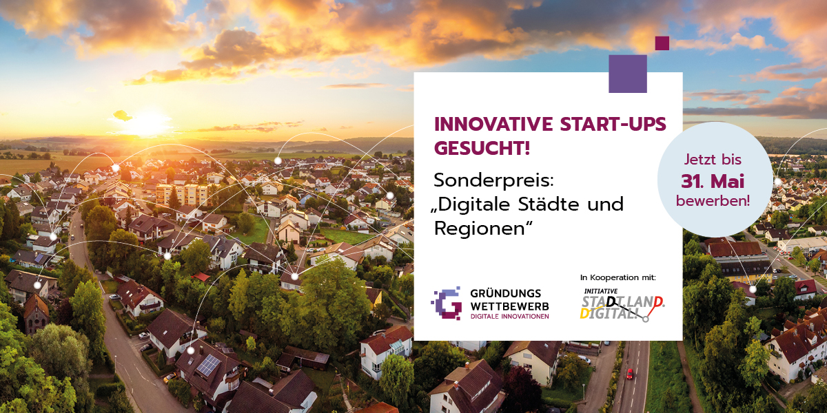 Mitmachen beim Gründungswettbewerb lohnt sich: Alle Teilnehmer:innen erhalten eine schriftliche Bewertung der Ideenskizze hinsichtlich Stärken, Schwächen, Chancen und Risiken. Außerdem winken Preisgelder von bis zu 32.000 Euro, attraktive Vernetzungsmöglichkeiten und die Chance auf den Sonderpreis „Digitale Städte und Regionen“, der mit zusätzlichen 10.000 Euro dotiert ist.