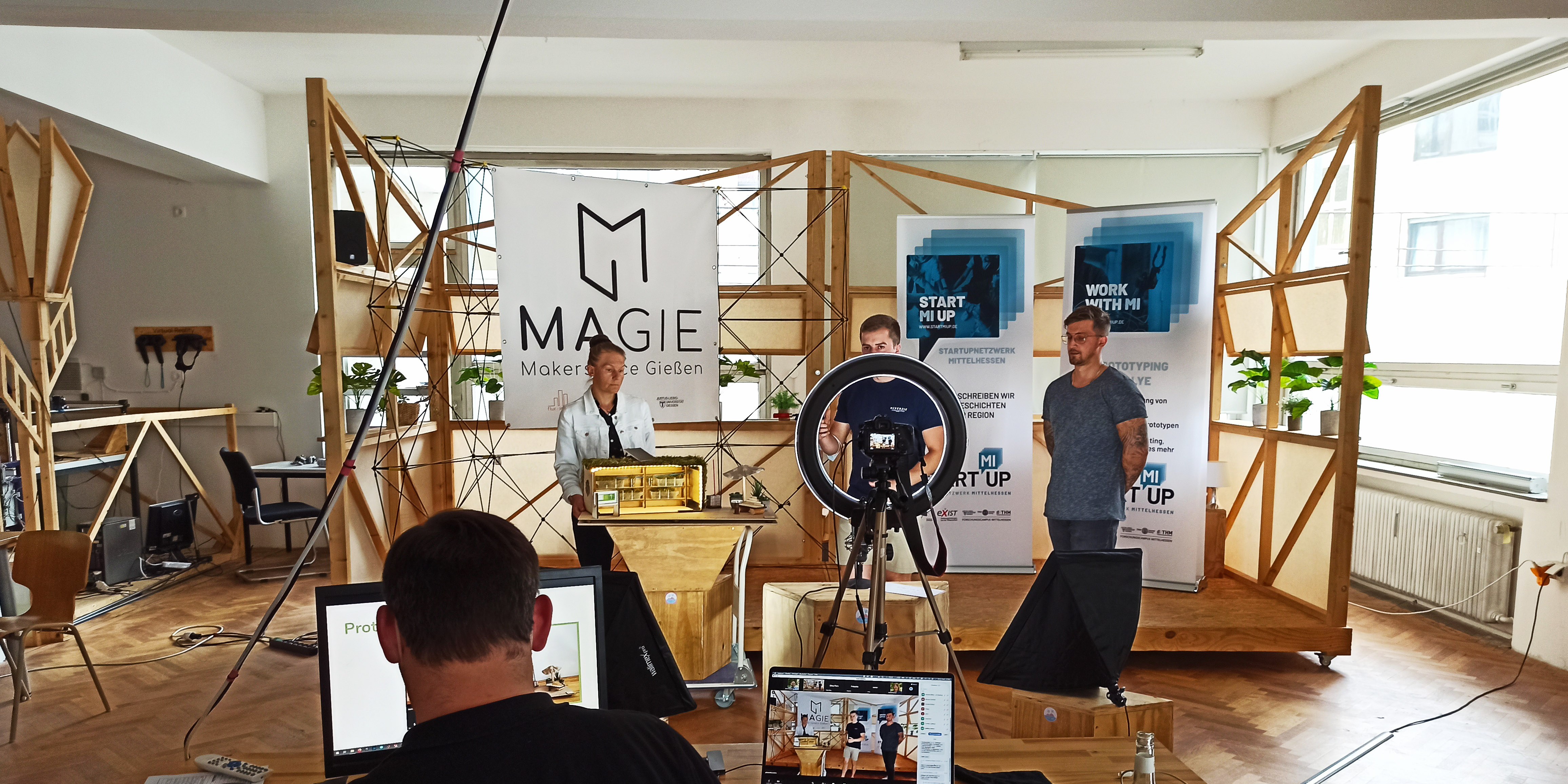 Einen feierlichen Abschluss fand die StartMiUp Prototyping Rallye bei einer digitalen Abschlussveranstaltung, die live von der Pitch-Bühne aus dem Makerspace MAGIE in Gießen übertragen wurde.