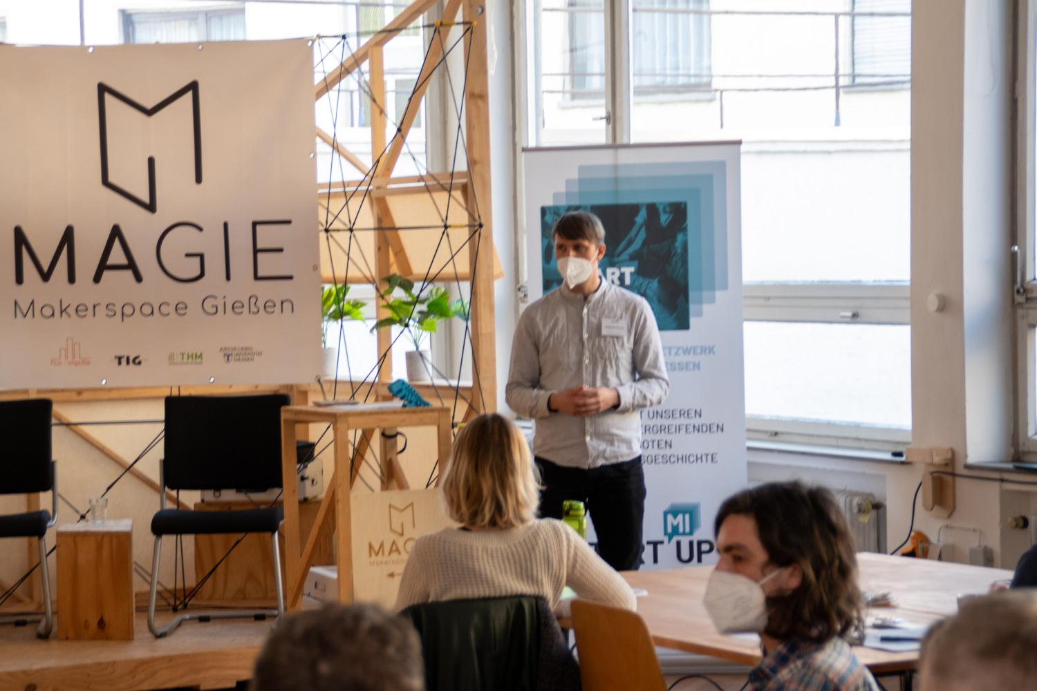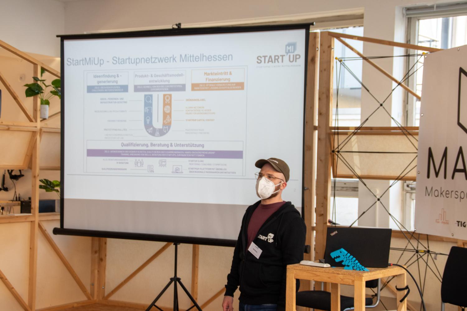Die StartMiUp Prototyping Rallye fand ihren krönenden Abschluss beim Abschlussevent am 07.04.2022 im Vortragsraum der Universitätsbibliothek in Marburg. Dieses Event war zeitgleich die erste, in Präsenz stattfindende Veranstaltung für eine interessierte Öffentlichkeit, in der nunmehr knapp zwei Jahre dauernden Laufzeit des Verbundprojektes StartMiUp.