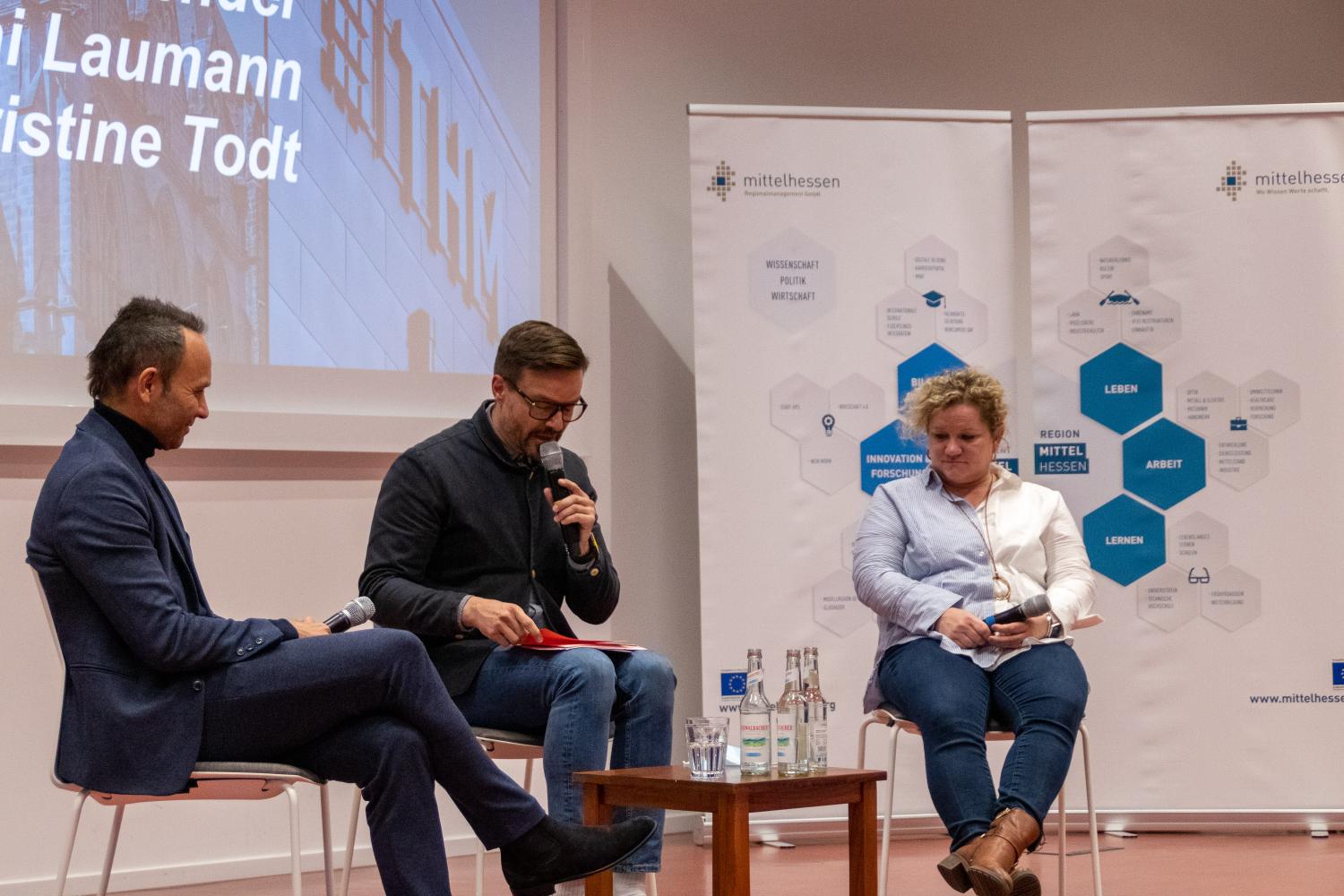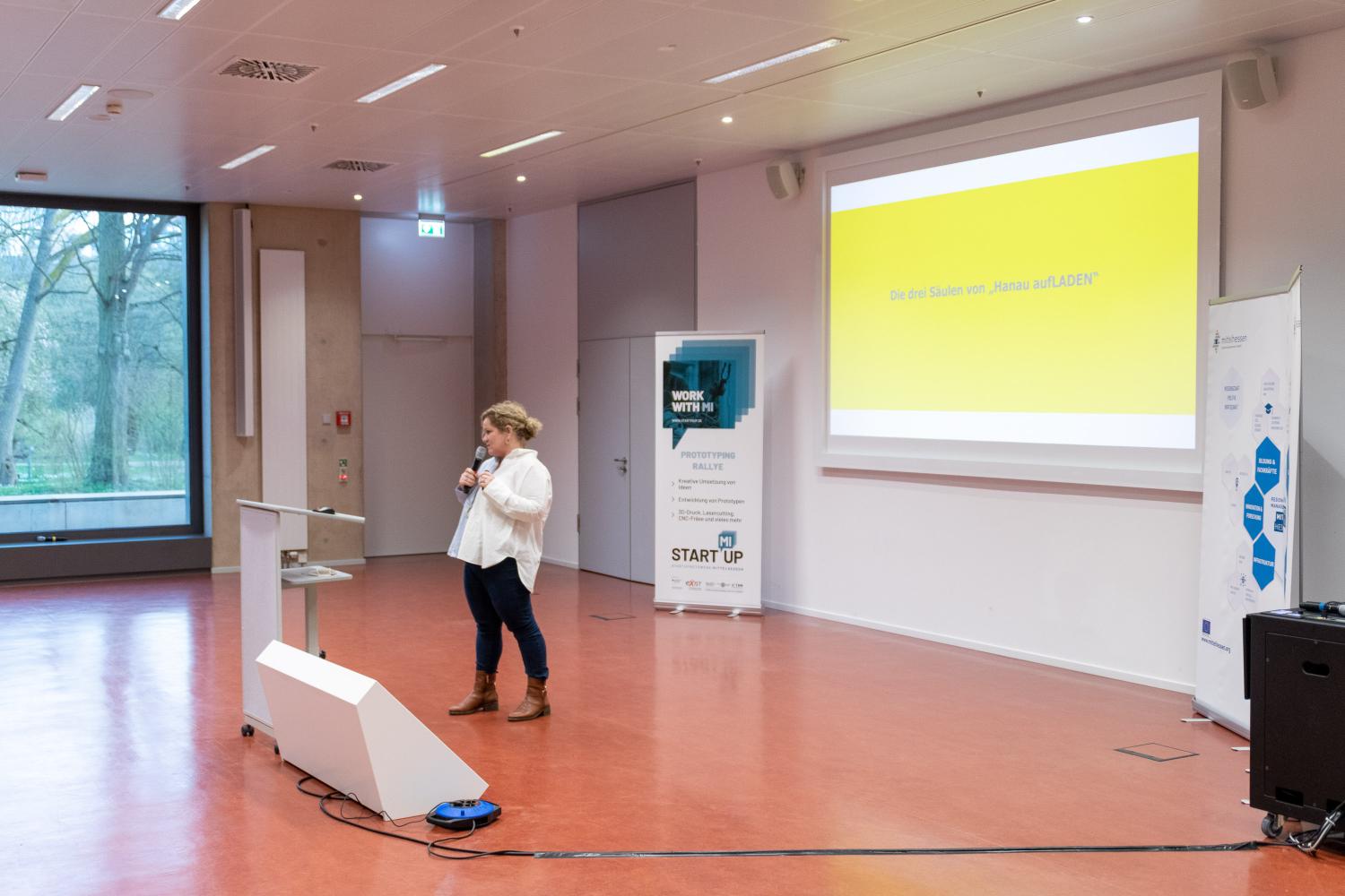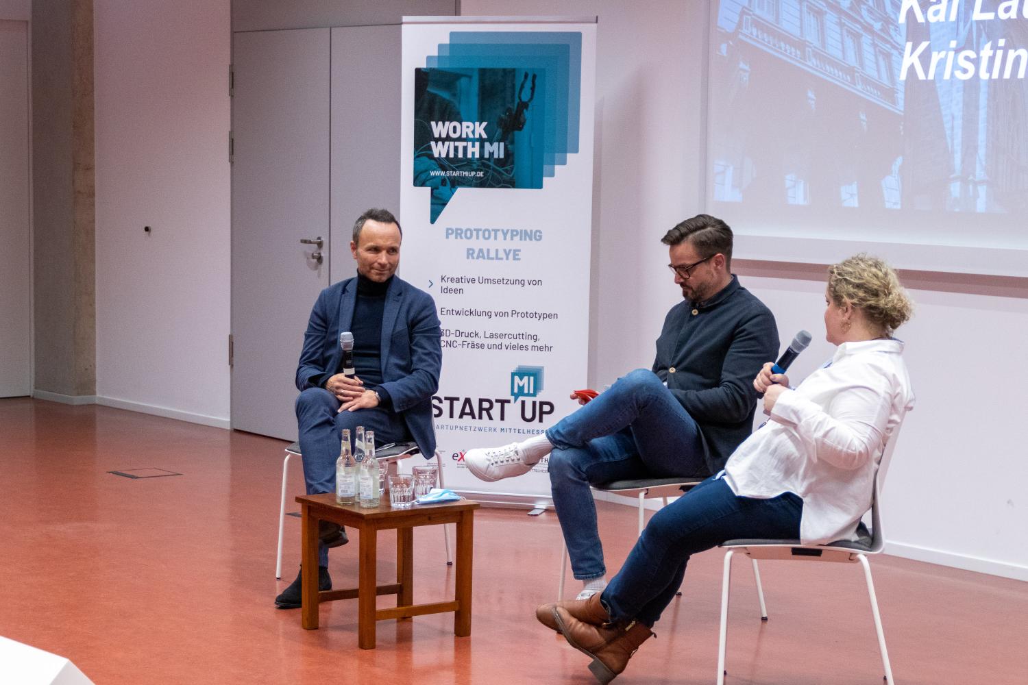 Die Zuschauerinnen und Zuschauer bekamen nach einem Grußwort des frischgebackenen Präsidenten der Philipps-Universität Marburg, Prof. Dr. Thomas Nauss, bei kurzweiligen und abwechslungsreichen Ideen- und Prototypenpitches einen Einblick in das Erarbeitete der Rallye-Teilnehmer:innen. Abgerundet wurde der Abend durch interessante Expert:innenbeiträge zum Thema Innenstadtentwicklung. Hierfür, ebenso wie bereits zum Kickoff der Rallye konnte die Regionalmanagement Mittelhessen GmbH dank ihrer vielzähligen Netzwerkkontakte ausgewiesene Expertinnen aufbieten. Frau Kristine Todt vom Stadtmarketing der Stadt Hanau gab Einblicke in das dortige Projekt „Hanau aufLaden“. Im Anschluss gab es noch einen Live-Podcast mit dem Transformationsexperten Boris Bender, Immobilienentwickler Kai Laumann sowie Kristine Todt zum Thema.