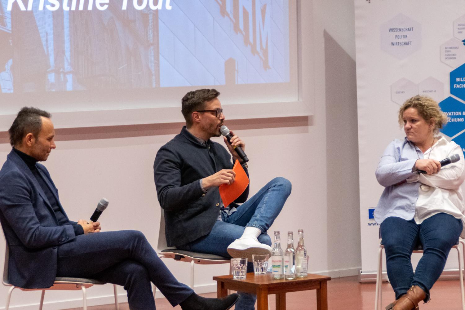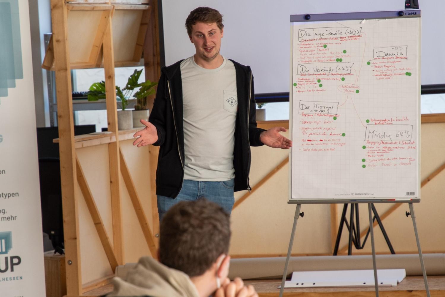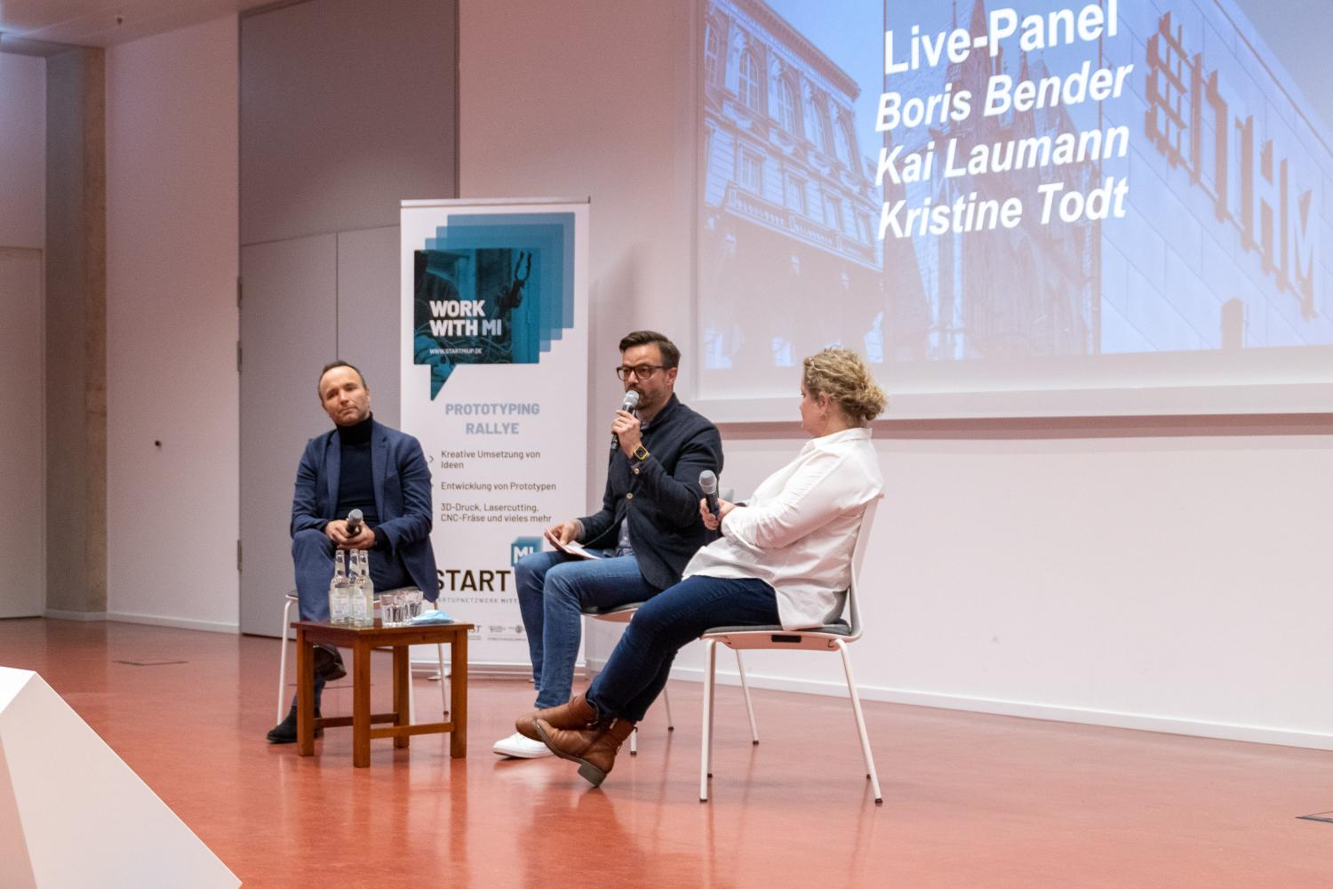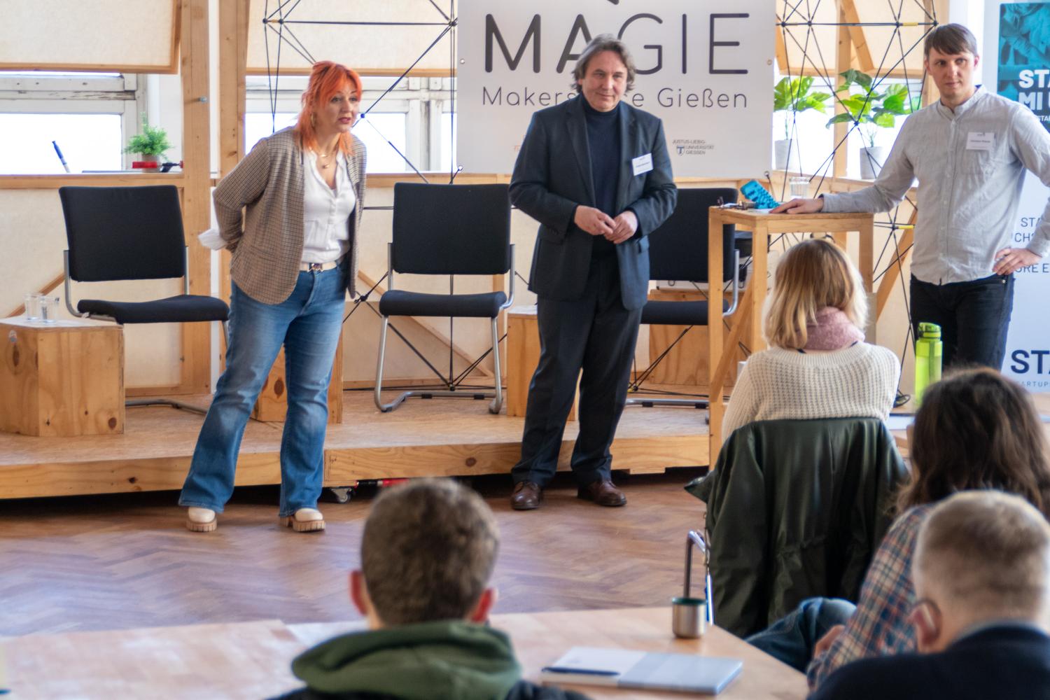 Die Zuschauerinnen und Zuschauer bekamen nach einem Grußwort des frischgebackenen Präsidenten der Philipps-Universität Marburg, Prof. Dr. Thomas Nauss, bei kurzweiligen und abwechslungsreichen Ideen- und Prototypenpitches einen Einblick in das Erarbeitete der Rallye-Teilnehmer:innen. Abgerundet wurde der Abend durch interessante Expert:innenbeiträge zum Thema Innenstadtentwicklung. Hierfür, ebenso wie bereits zum Kickoff der Rallye konnte die Regionalmanagement Mittelhessen GmbH dank ihrer vielzähligen Netzwerkkontakte ausgewiesene Expertinnen aufbieten. Frau Kristine Todt vom Stadtmarketing der Stadt Hanau gab Einblicke in das dortige Projekt „Hanau aufLaden“. Im Anschluss gab es noch einen Live-Podcast mit dem Transformationsexperten Boris Bender, Immobilienentwickler Kai Laumann sowie Kristine Todt zum Thema.