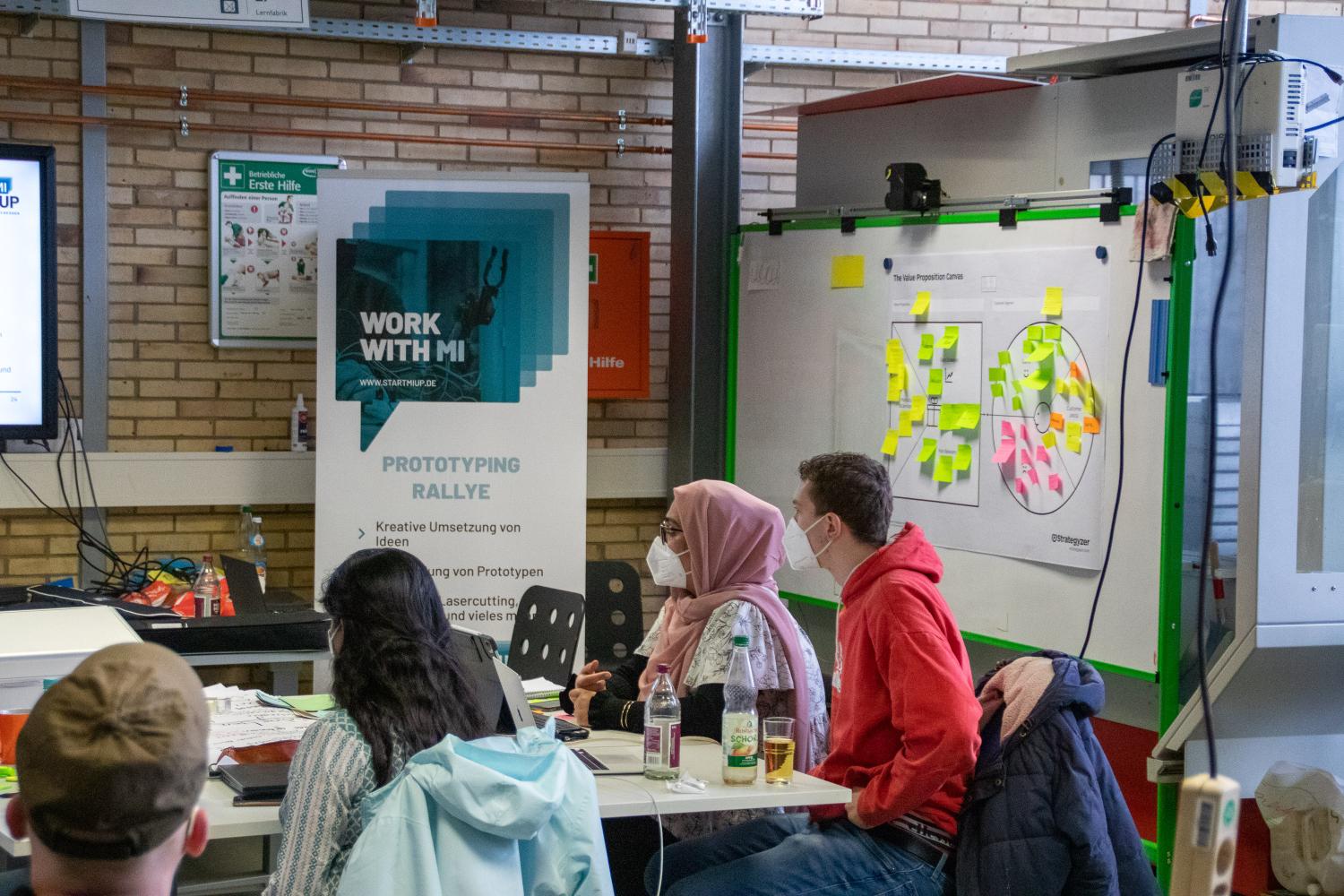 Im Einzelnen bestanden die vergangenen fünf Wochen aus Workshops zu Design Thinking, Kreativität, Geschäftsmodellentwicklung, Prototyping Technologien und natürlich Inhalten zum Thema Prototyping und Testing im Allgemeinen. „Dank der Unterstützung der StartMiUp-Mitarbeitenden und der lehrreichen Workshops konnten wir in dieser kurzen Zeit erstaunlich viel auf die Beine stellen und unsere Idee super ausarbeiten“ zeigt sich Frau Halla Ahmad erfreut über die Teilnahme an der diesjährigen Prototyping Rallye.
