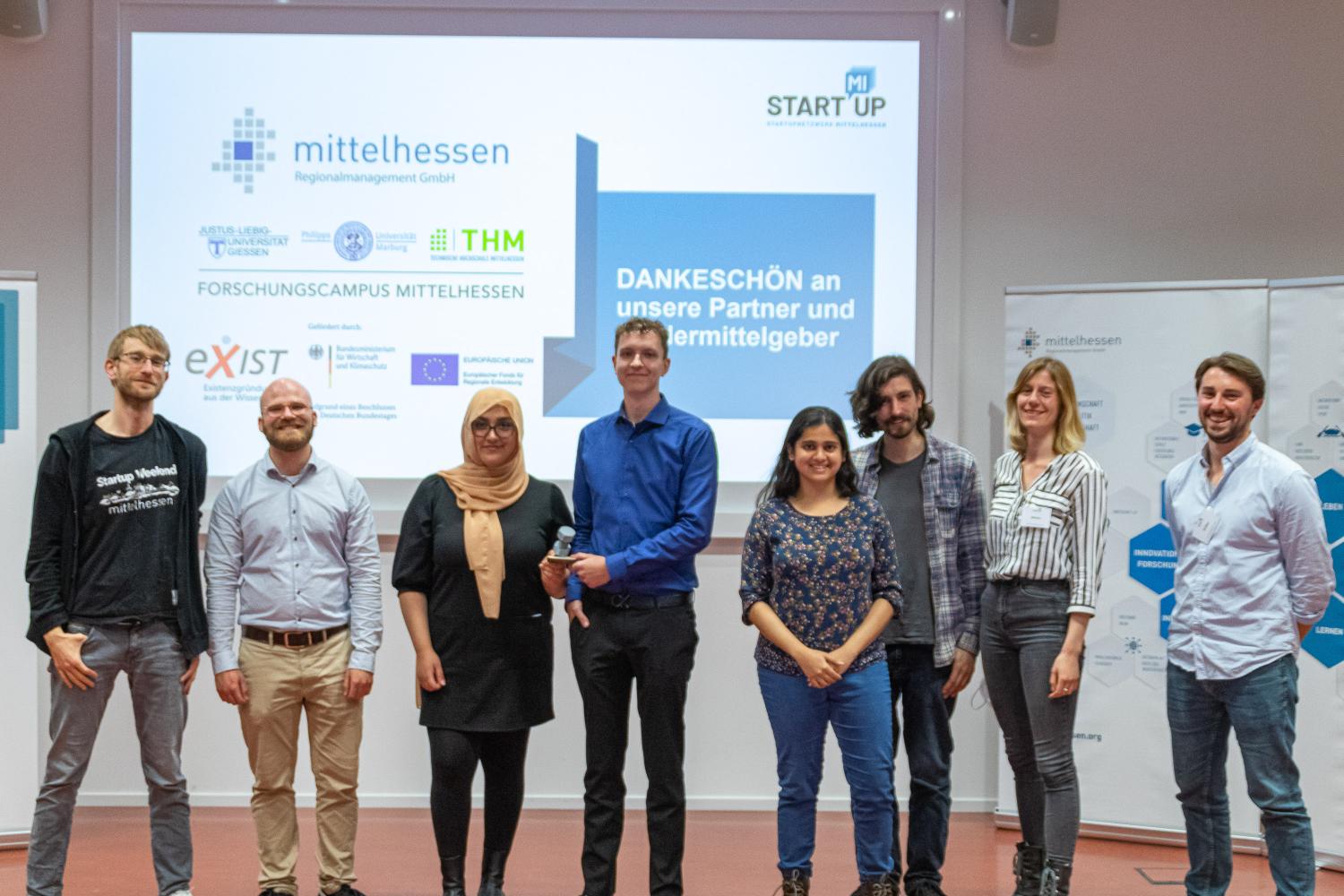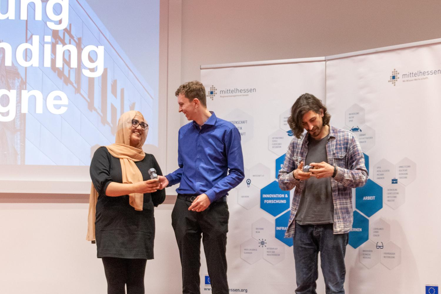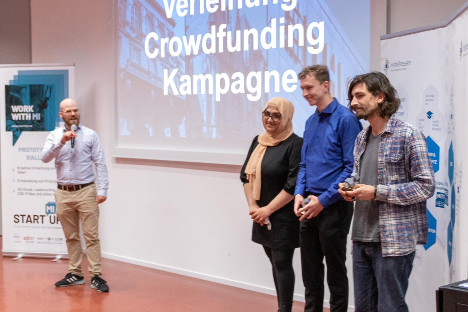 Zum Ende bekamen dann die besten beiden Ideen Ihren Preis überreicht. Mit der Unterstützung der Gründungsberater:innen von StartMiUp, haben diese beiden Teams nun die Möglichkeit, Ihre Idee bei einer Crowdfunding Kampagne intensiver zu testen und erste Schritte zur endgültigen Verwirklichung ebendieser zu machen. Dank des Sponsorings durch die Regionalmanagement Mittelhessen GmbH kann hierzu sogar eine professionelle mediale Begleitung durch die örtliche Kreativagentur Werkraum 56 ermöglicht werden. Die Gewinnerteams wurden durch eine Jury, bestehend aus Mitgliedern der beteiligten Hochschulen sowie des Forschungscampus Mittelhessen und des Regionalmanagements ermittelt.