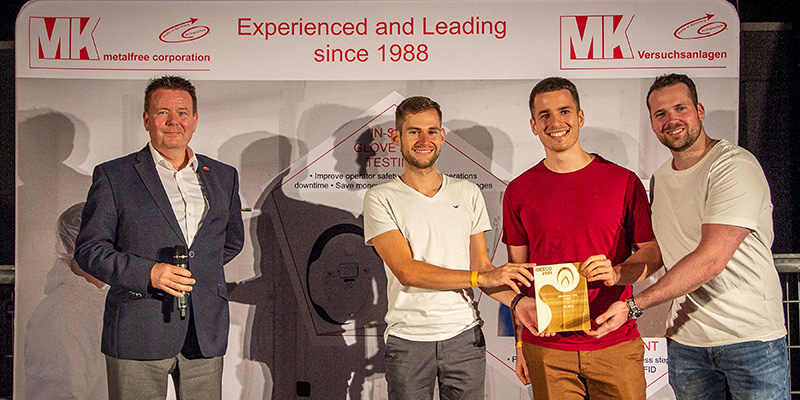 Mit solch einem nachhaltigen Ansatz räumte Leaf2Production um Toni Frankenstein, Willi Solowjew und Dominik Schreiber gleich zwei Preise ab. Die Jury unter Vorsitz von THM-Präsident Prof. Dr. Matthias Willems bedachte die Gründer mit dem mit 2000 Euro dotierten zweiten Platz. Annekatrin Walter, Unternehmertochter und Managerin des Co-Sponsors MK Versuchsanlagen, überreichte ihnen zudem den ebenso hoch dotierten Nachhaltigkeitspreis. Sie zeigte sich beeindruckt von der Idee, Pflanzenabfälle aus der Landwirtschaft in unmittelbarer Nähe zu ihrem jeweiligen Entstehungsort in Naturfasern umzuwandeln, die in der Industrie vielseitig Anwendungen finden sollen.